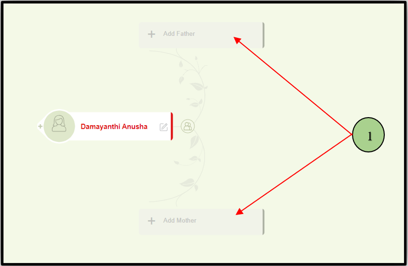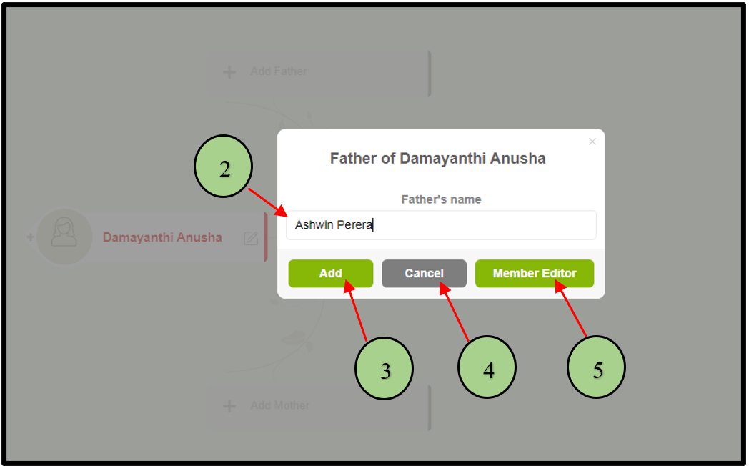2. Once the user clicks on one of the parent nodes, a popup will appear to add the parents’ first and last names.