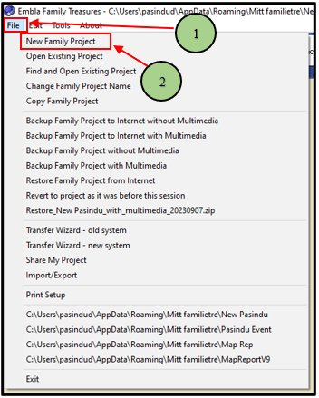 - Open the “Embla Familie og Slekt v9” application.