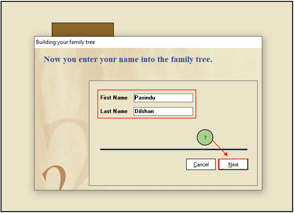 7. Add the first and last name of the root member and click the “Next” button.