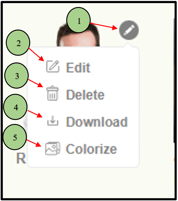1. When clicking on the “pencil” icon on the image it will display different options.
