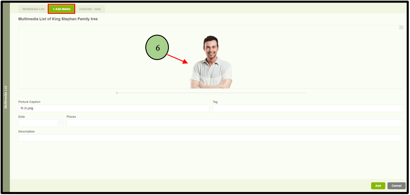 6. When clicking on the edit option, the user will be navigated to the “Add Media” tab with the selected image.