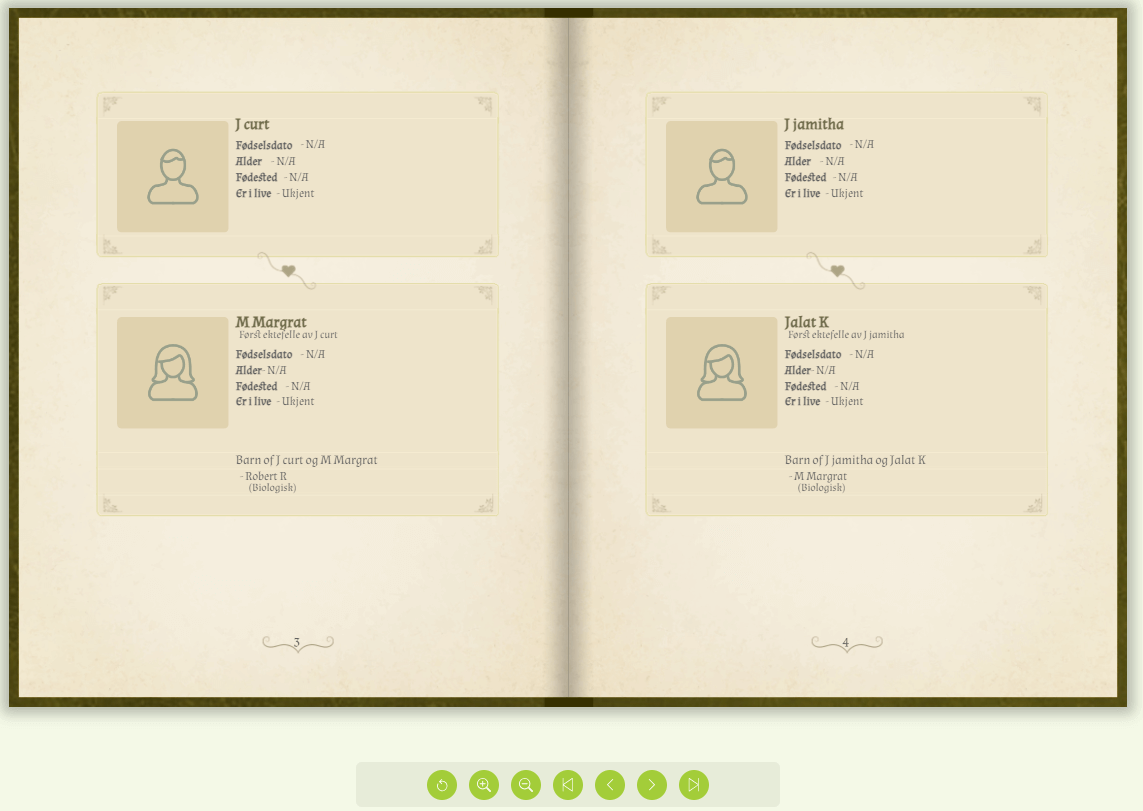 01) The Person Book presents all members within a family tree. It functions as a flip book, allowing users to flip through the pages and access information about each member of their family tree.
