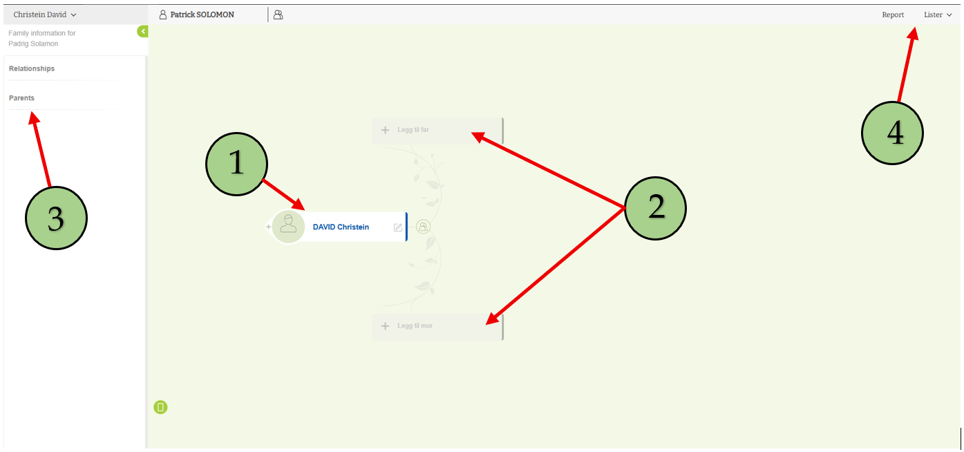 - The user can see the first node of the family with the initially added person (Root person)