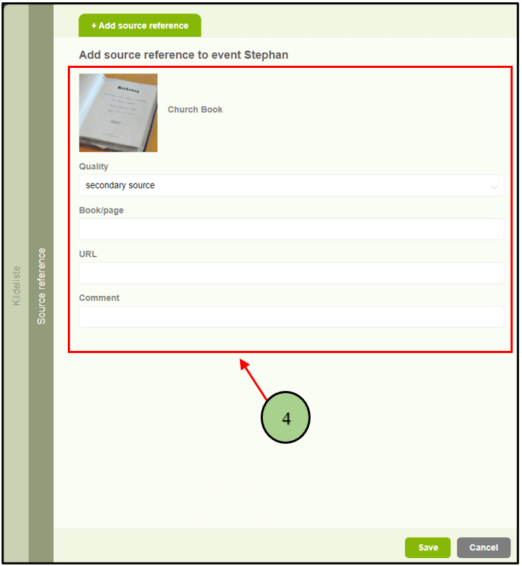 1. Users have the option to add proof or reference for an event utilizing the “sources” feature.