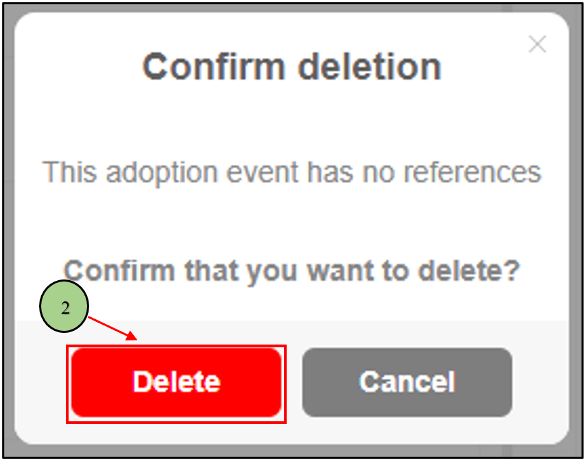 2. Upon clicking the delete icon, a confirmation message will be displayed, prompting the user to confirm their action. Subsequently, the user can proceed by clicking on the “Delete” button to permanently remove the event.