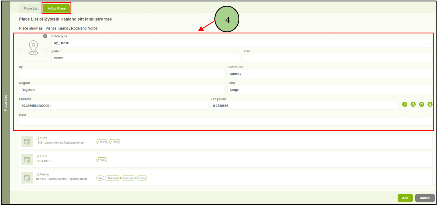 4. Users are able to edit a location by clicking on the “Edit” option. Then the user will be navigated to the “Add Place Name” tab with the available data.