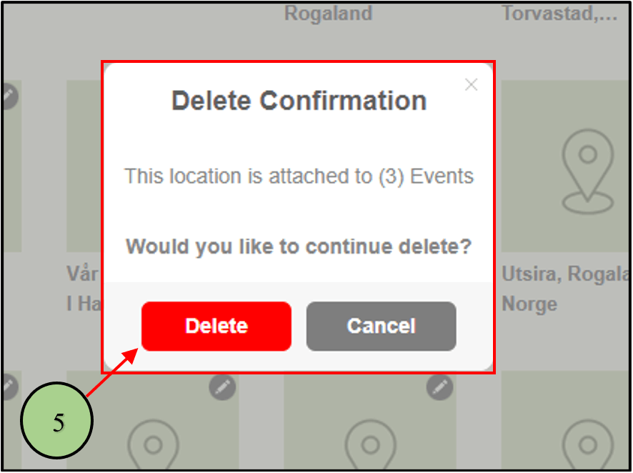 5. When clicking on the delete option, a confirmation message will be displayed in order to get the confirmation to delete the location.