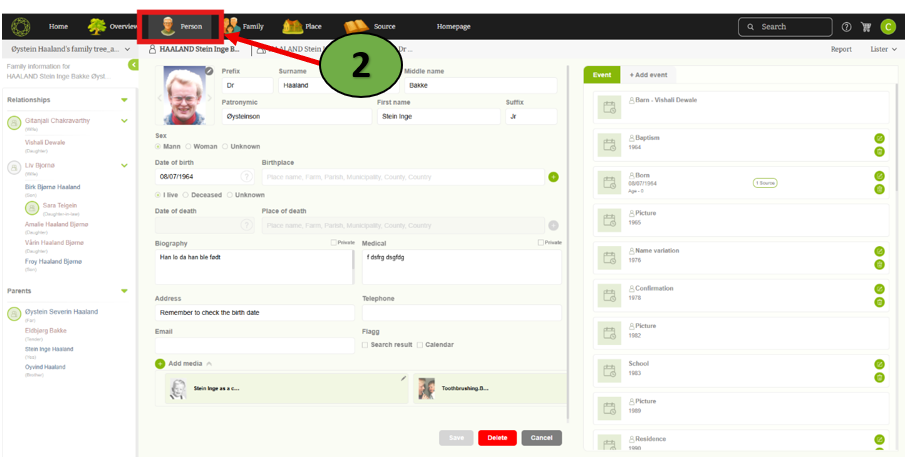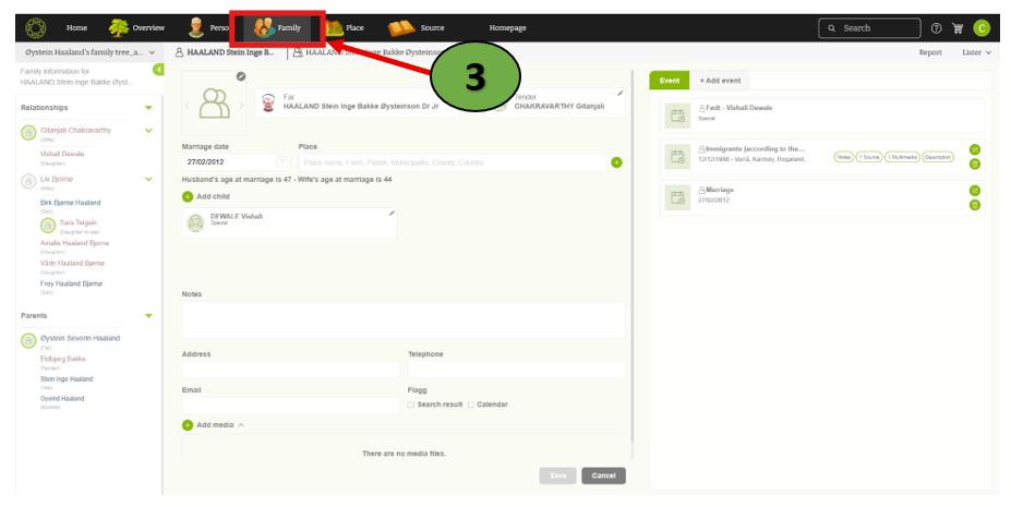- Family editor – Users can edit specific family details