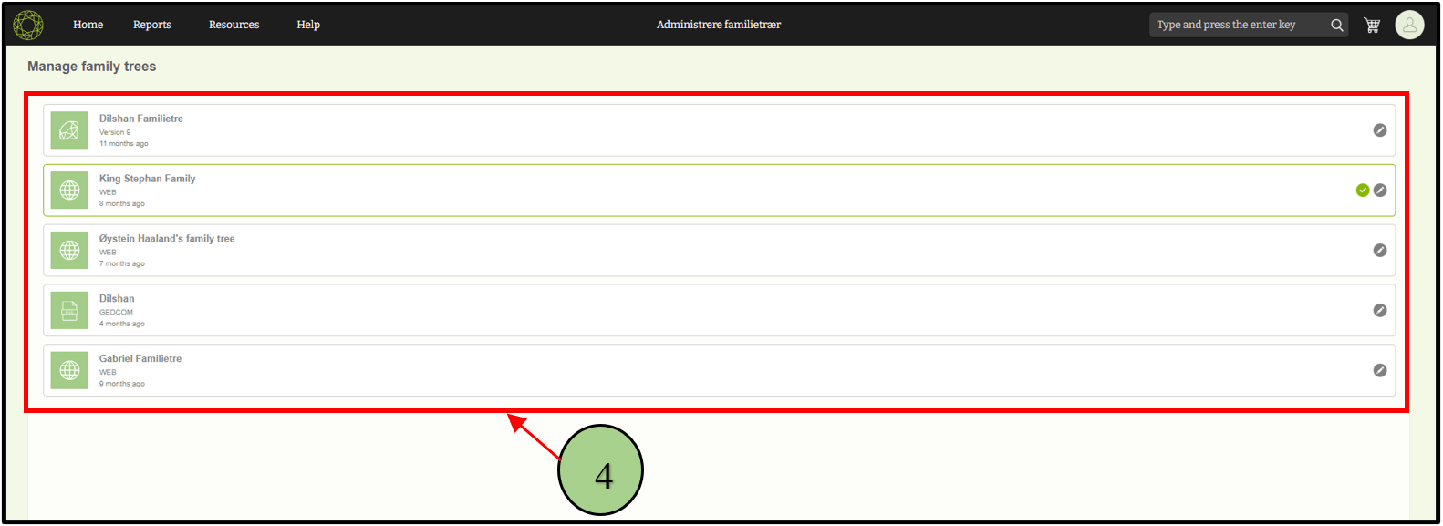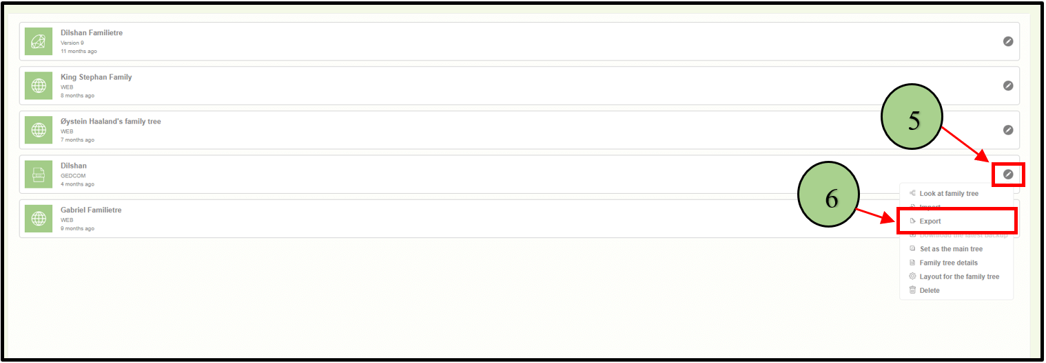 5. Click on the “edit” icon next to the tree that is to be exported by the user.
