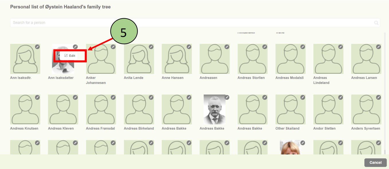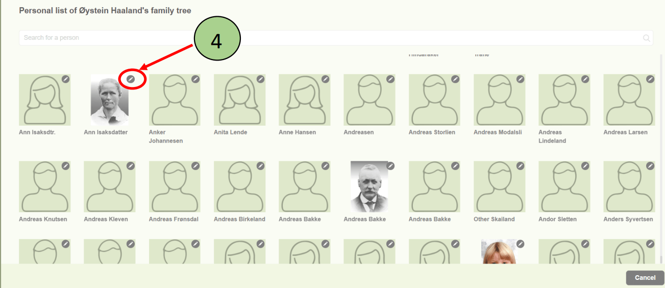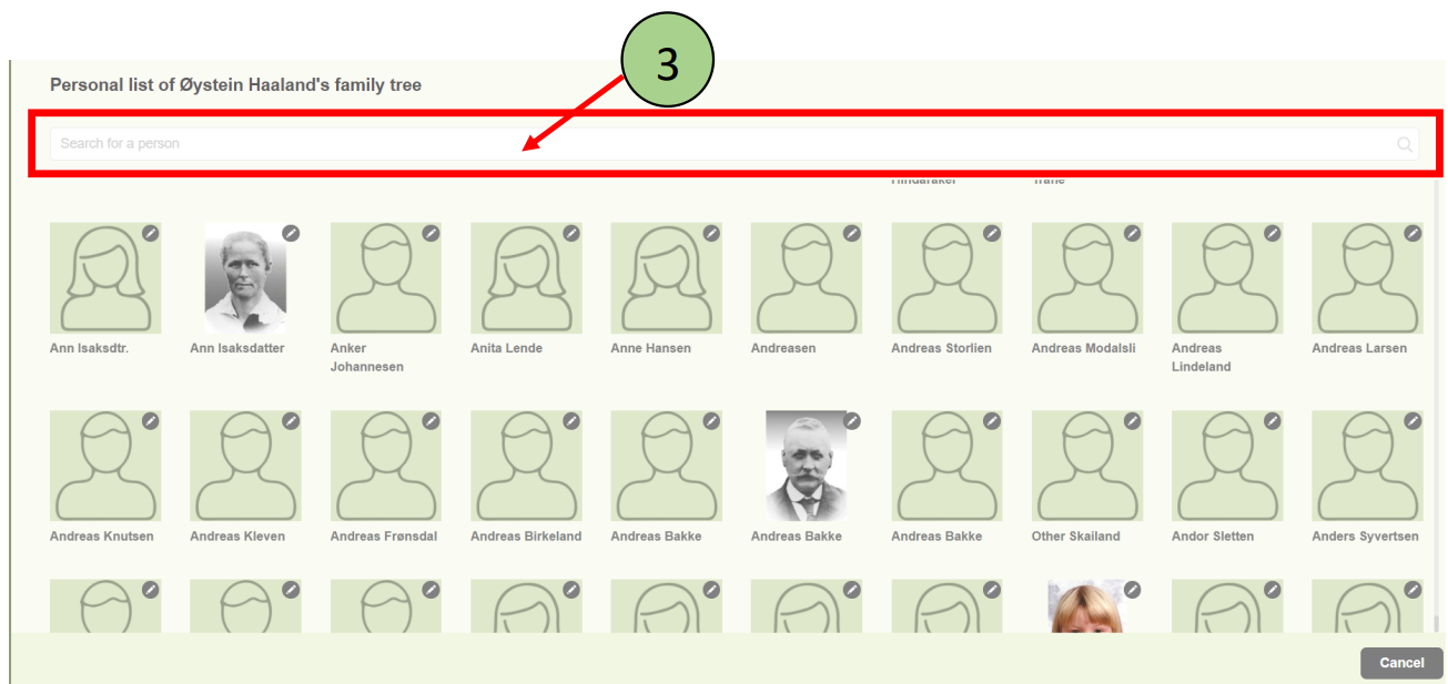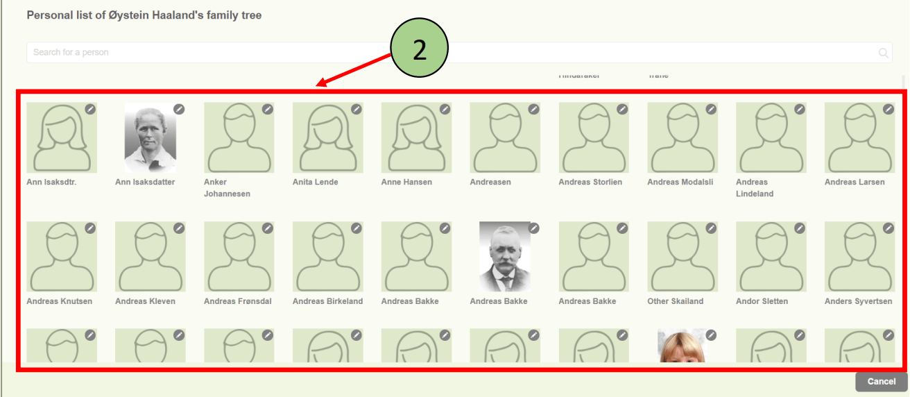 2. The person list will be opened with all the available members of the family project.