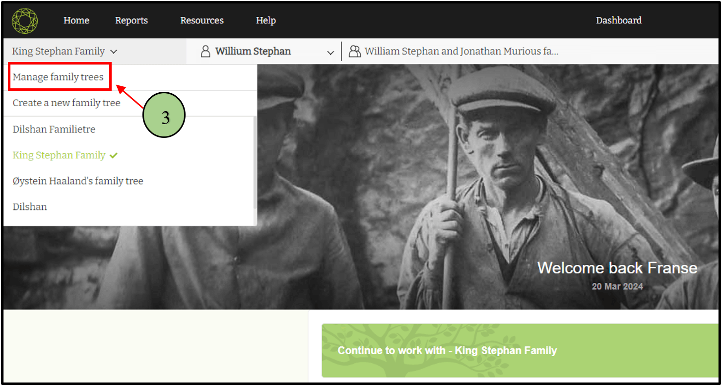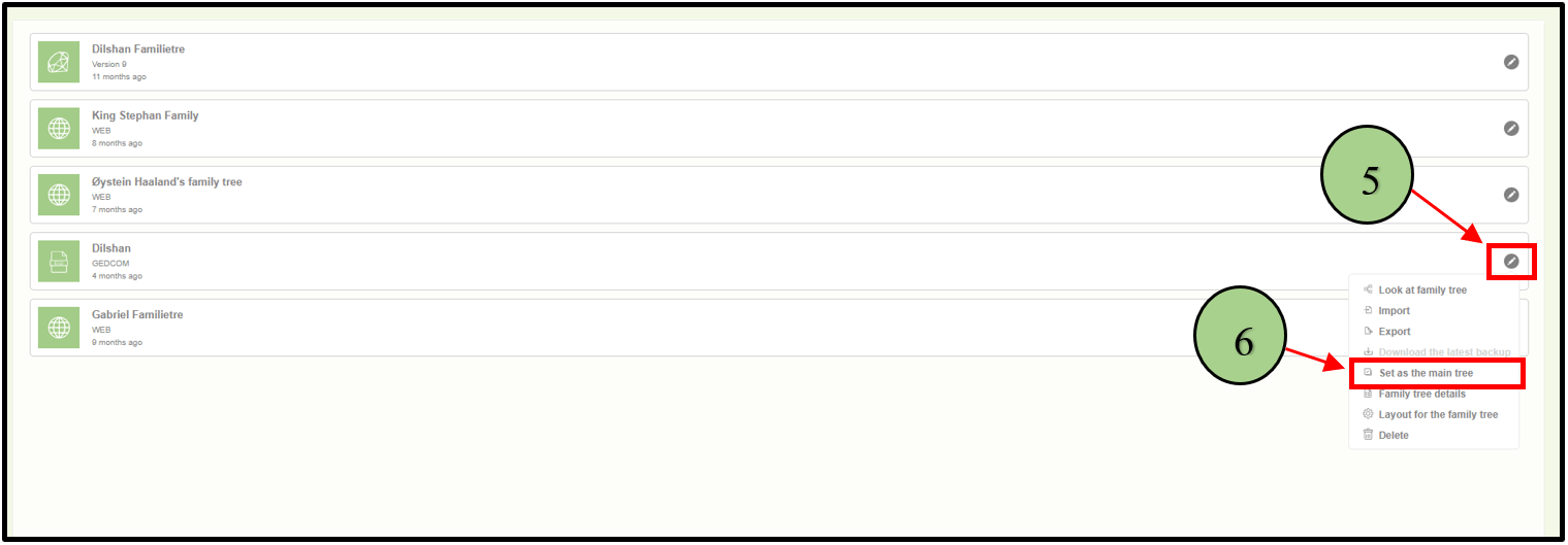 5. Click on the edit icon next to the family tree for which the user wants to view details.