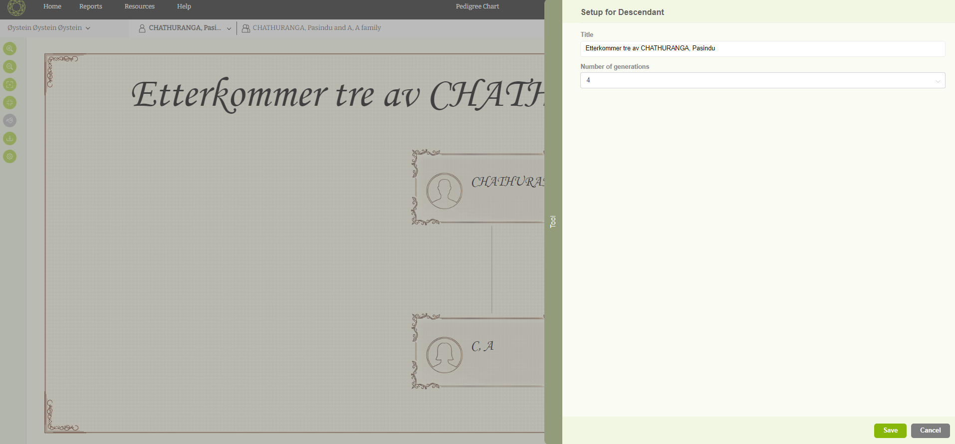 - If you want to see the descendants of another member in the tree, set that person as the root person and generate the report.