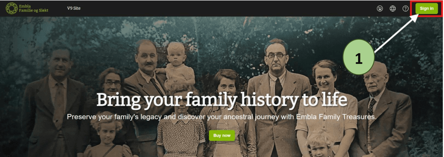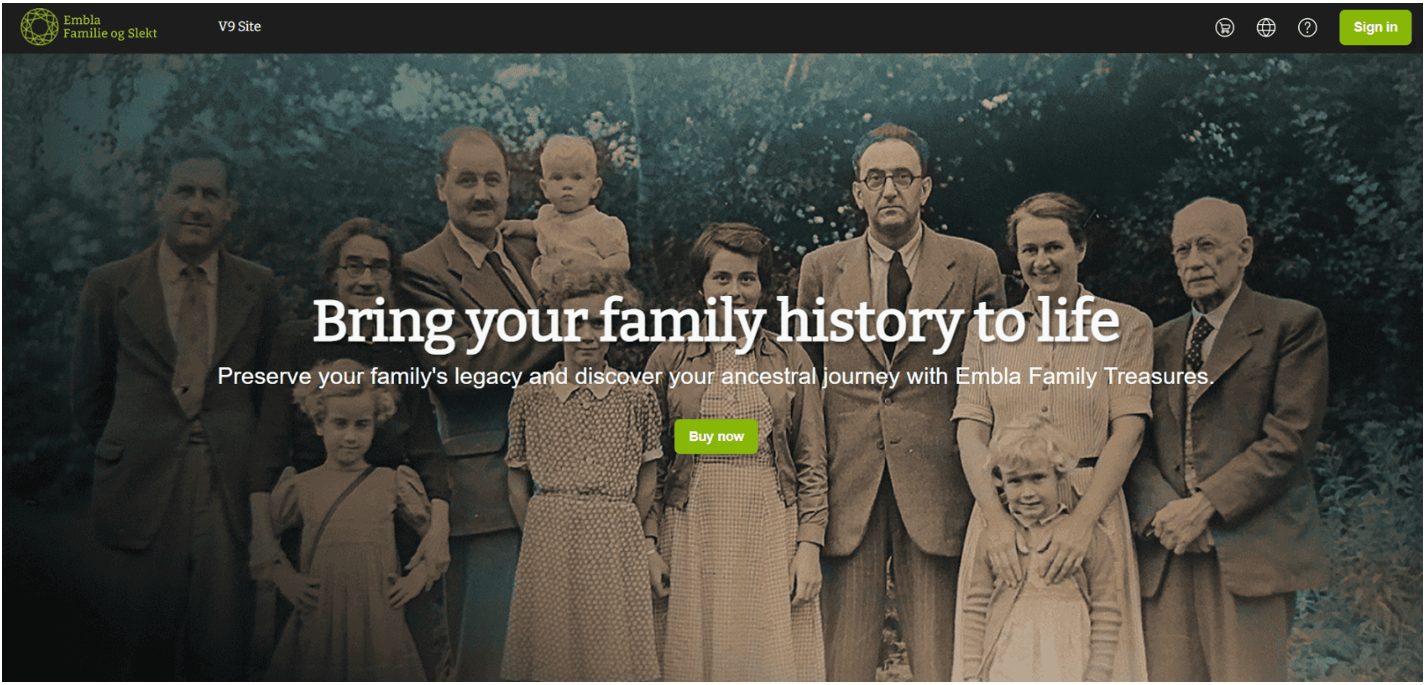 Go to the www.embla.no web Application. You will be redirected to the “Embla Norwegian Family History” web application.