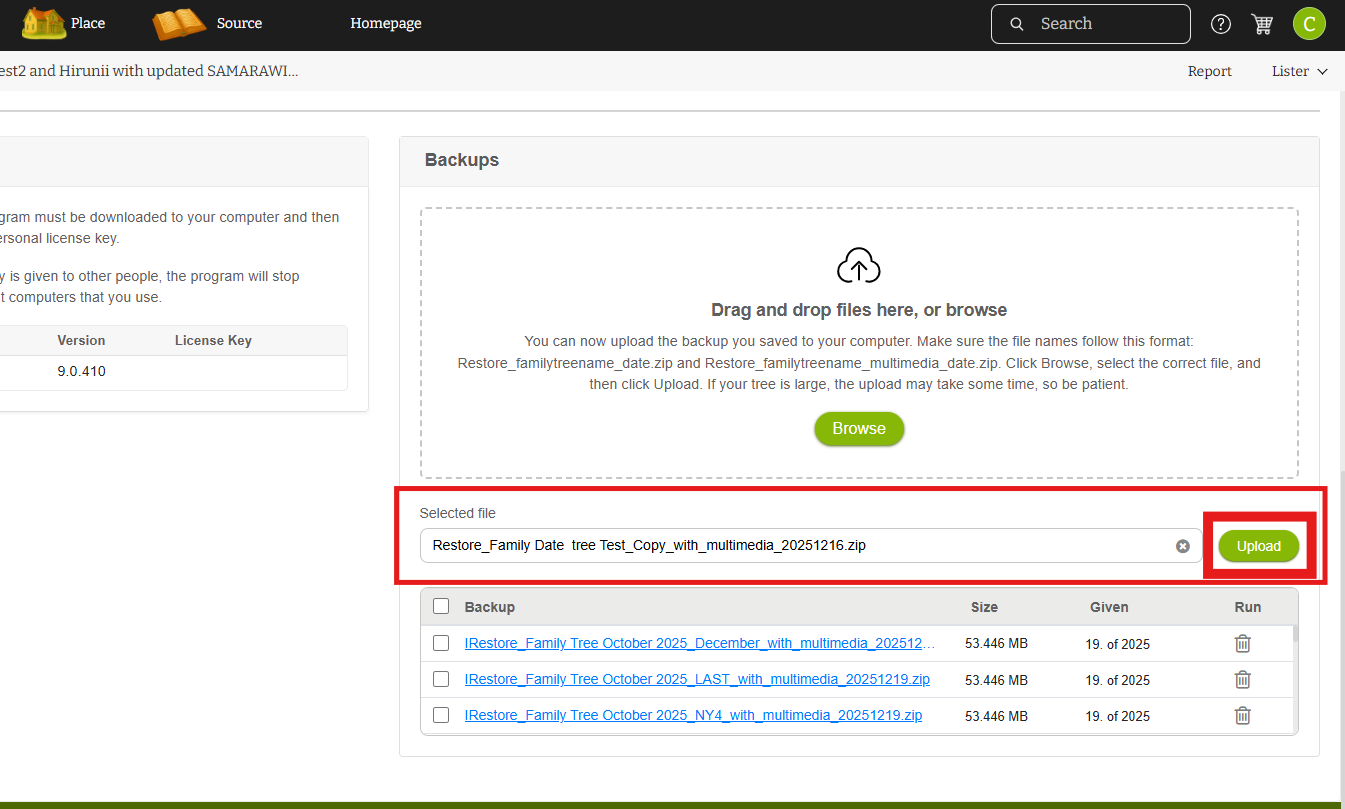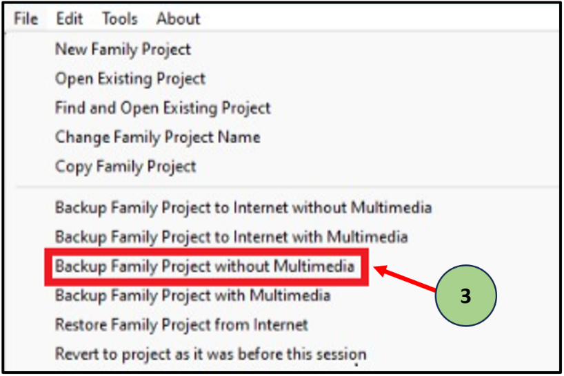 - The other one is “Backup Family Project without Multimedia”. This will save your family tree data locally as a zip file.