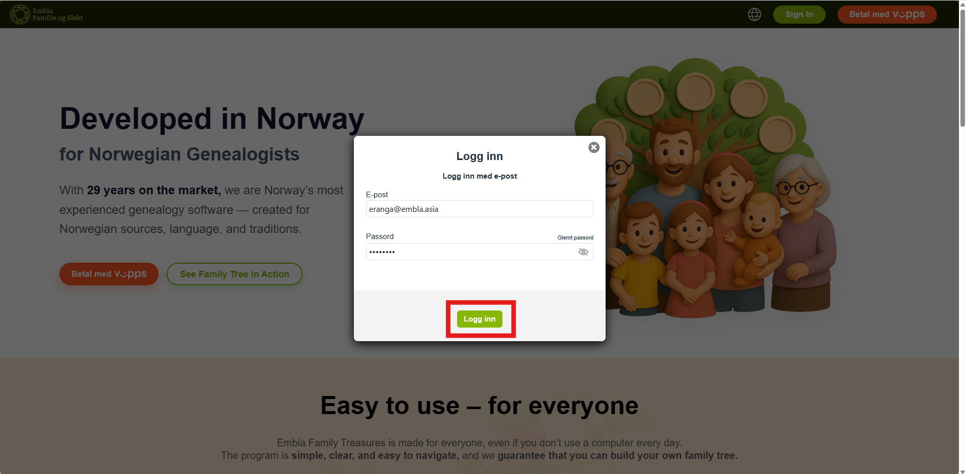 - Go to www.embla.no using your browser (Chrome, internet Explorer, Firefox or any other).