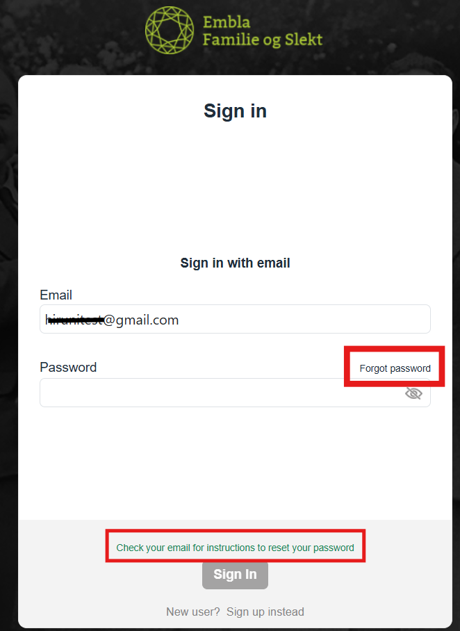 If you have forgotten your password for accessing Embla Family History, follow these simple steps to retrieve it: