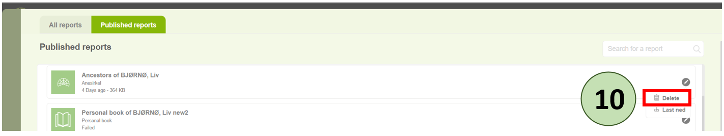 If you want to delete a generated report, click the Edit icon next to the report and select the “Delete” icon.