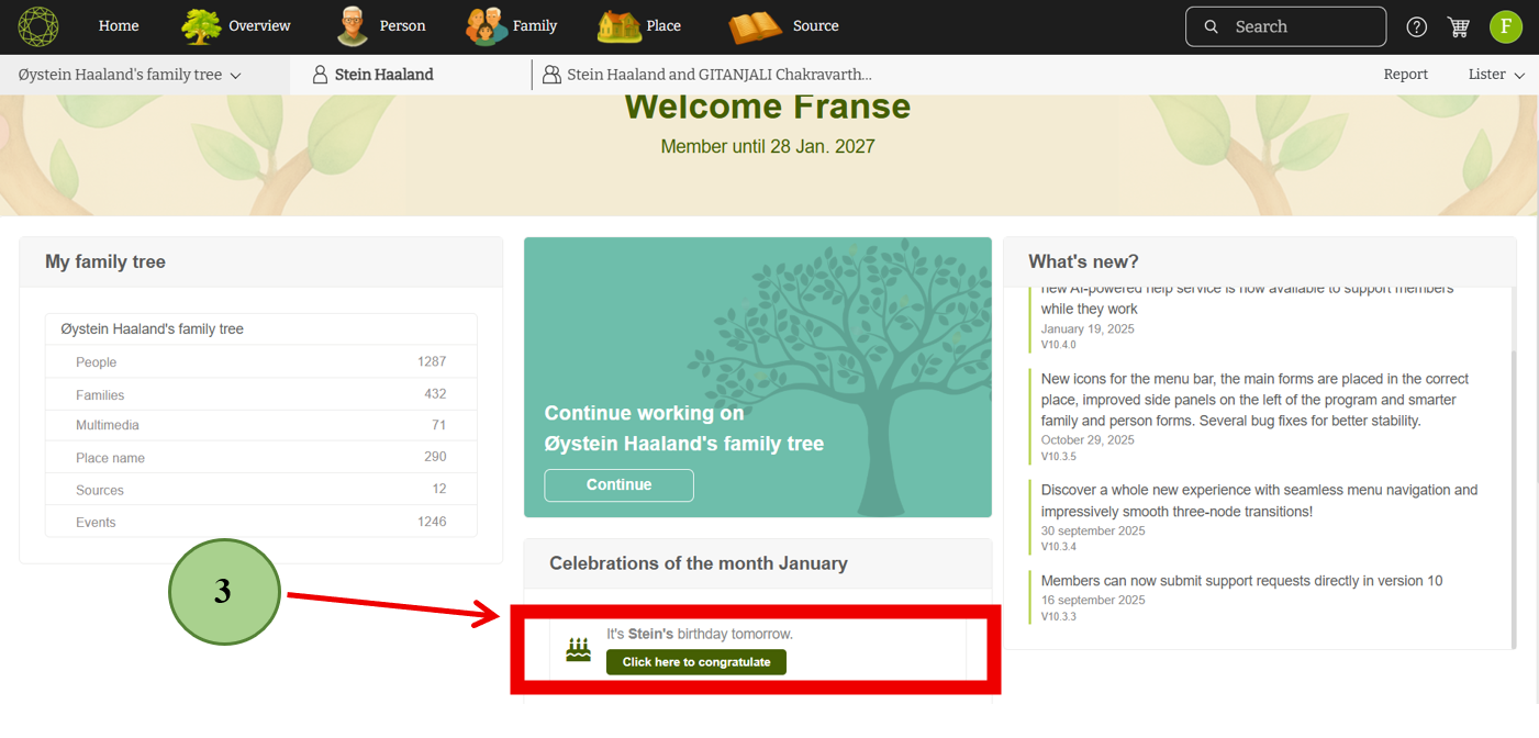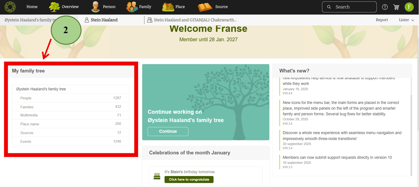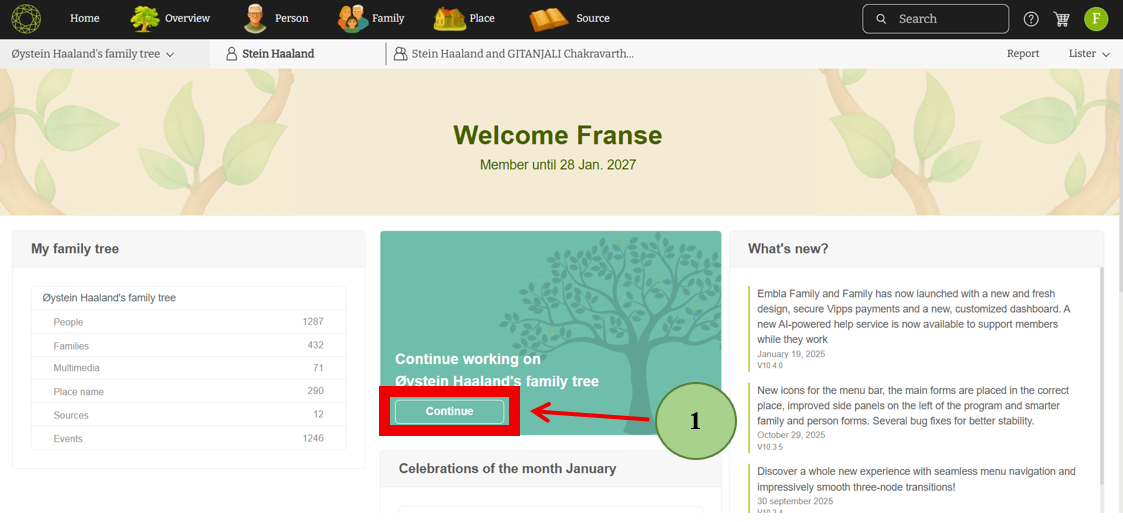 Simply click the “Continue” button to access an overview of your default family tree. This brings you directly into the heart of your family history in just one click.
