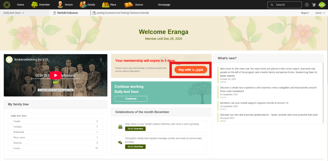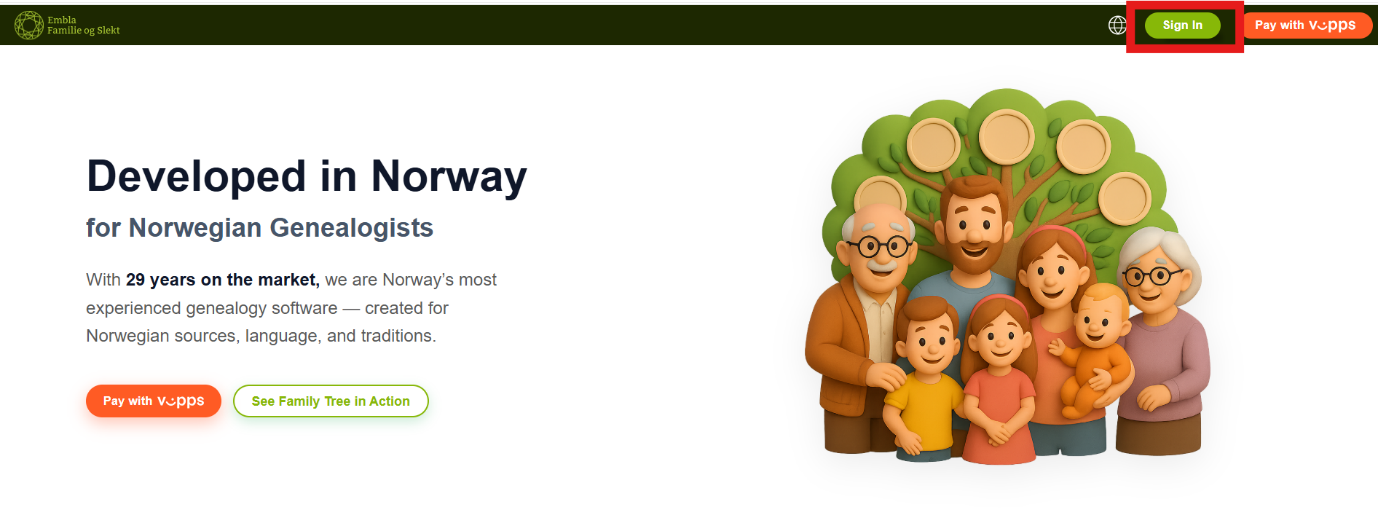 This guide explains how existing members can renew their Embla Family History membership before it expires using Vipps.