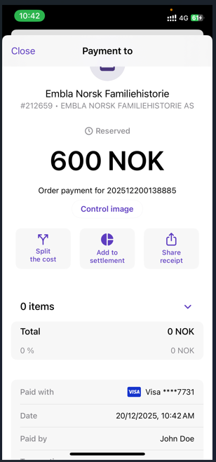 • A payment receipt summary will be displayed in the Vipps mobile app.