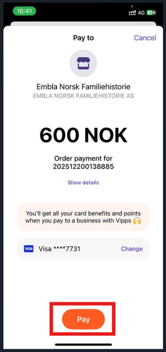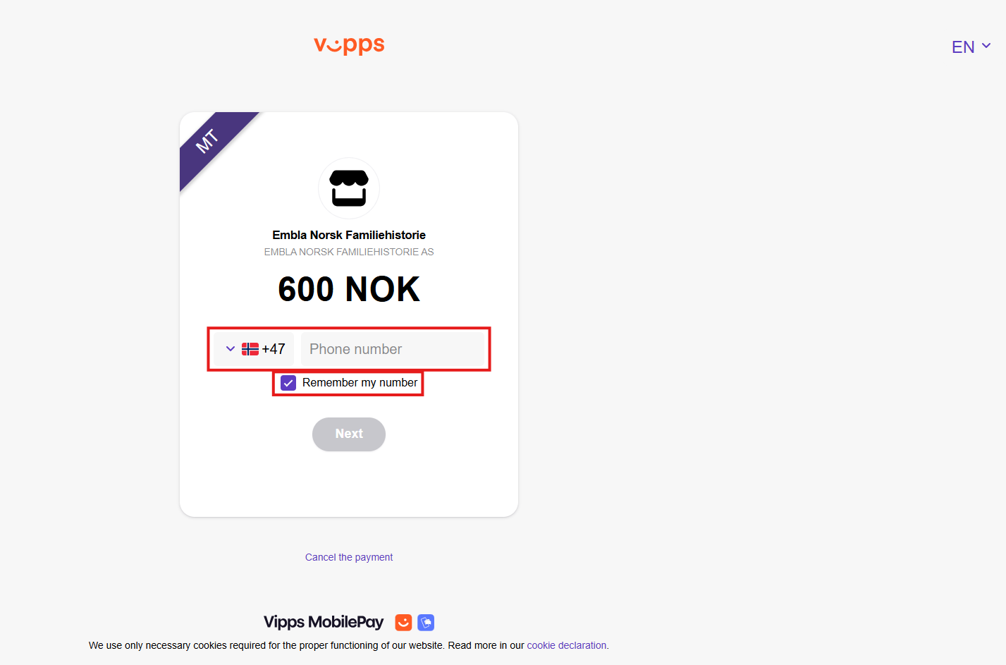 This will take you directly to the Vipps payment page.