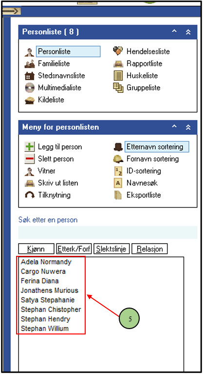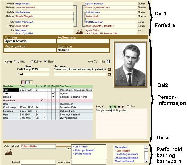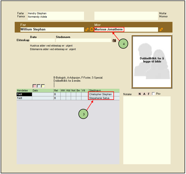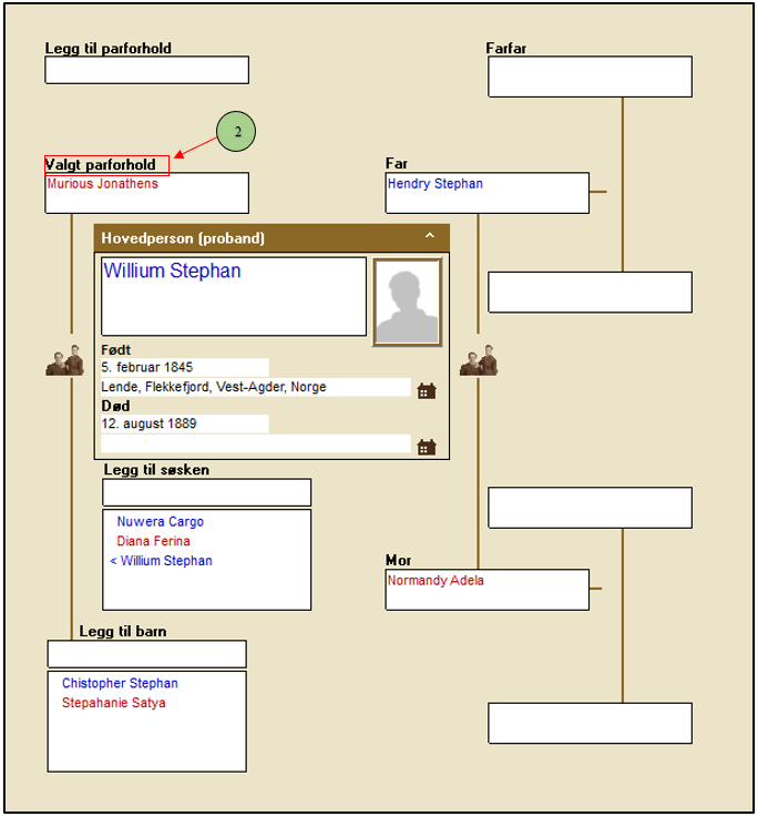 4. Ved å dobbeltklikke på en av foreldrene i Familieskjemaet