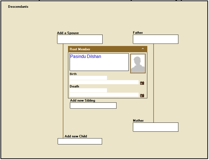 Første gang du starter vil alle feltene i familietreet være tomme.