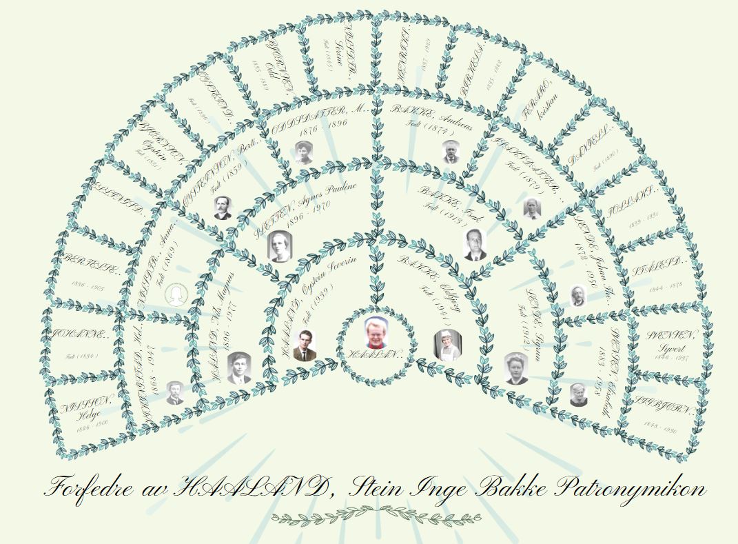 1) Denne anesirkelen gjengis kunstnerisk med blader og løv. I likhet med den originale anesirkelen viser denne varianten forfedrene til hovedpersonen