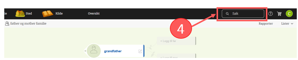 Alternativ 1 – Klikk på et navn i Oversiktsskjemaet for å sette denne personen som hovedpersonen.