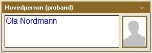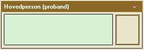 Når du setter markøren i en tom boks vil du se at feltet får en lys grønn bakgrunn og mørk grønn ramme. Det betyr at du kan skrive ett navn i denne boksen. Så lenge navnefeltet er grønt, er personen ikke lagret i programmet. Du må enten trykke på Enter eller Tab på tastaturet, eller klikke med musen et annet sted på skjermen. Nå blir feltet hvitt, og du har registrert en ny person i familietreet ditt. Vanskeligere er det ikke. Fortsett med dine foreldre og besteforeldre. Bildet under viser hovedpersonen med hvit bakgrunn. Da er personen lagret i familietreet.