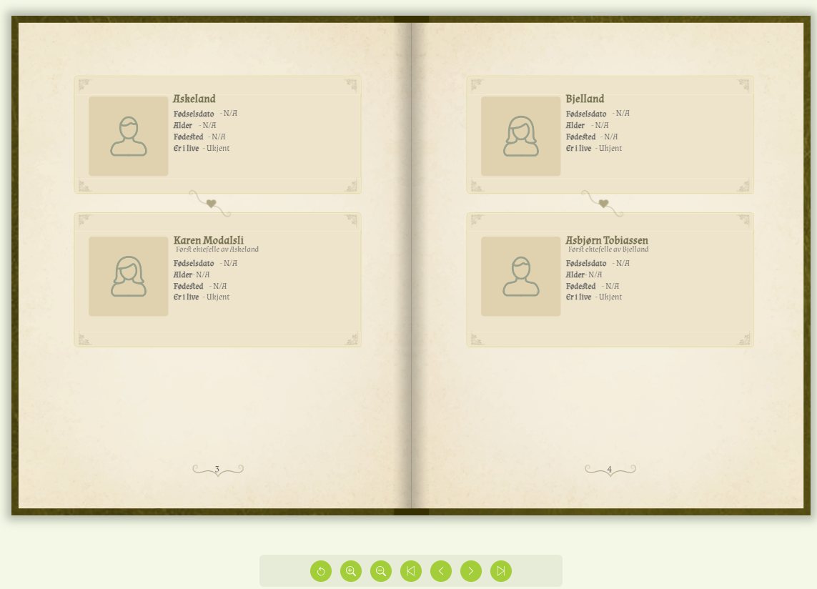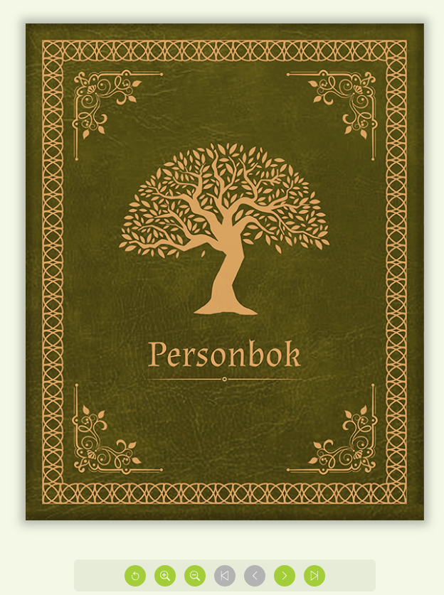 Personboken innenholder alle personene familietre. Den fungerer som en «flippbok», hvor det er mulig å bla gjennom sidene og få tilgang til informasjon om hver enkelt person.