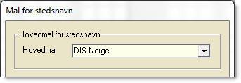 I menyen for Verktøy >> Mal for stedsnavn, er det mulig å sette hvilken hovedmal som skal ligge til grunn hver gang et nytt stedsnavn blir opprettet. Når programmet første gang blir installert er det malen for DIS.