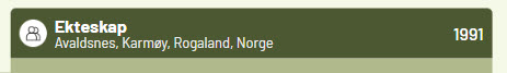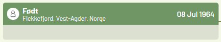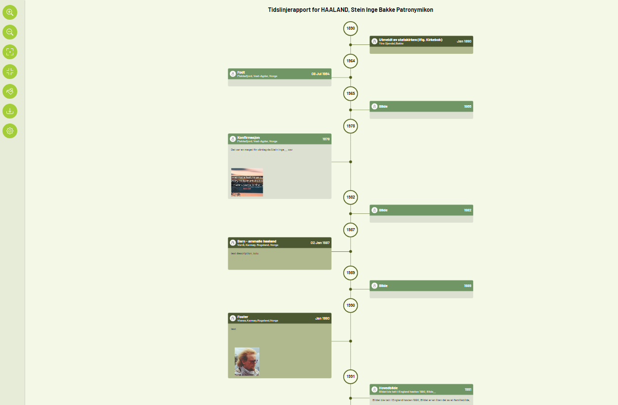 Tidslinjerapport-rapporten tar utgangspunkt i én enkelt person og viser alle hendelser i en nedadstigende linje. I linjen vises årstallene som er relevante for tidslinjen.