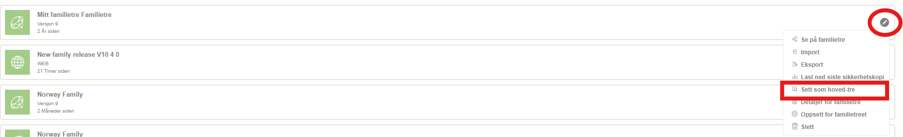 5. Klikk på redigeringsikonet helt til høyre for familietreet. En undermeny vises.
