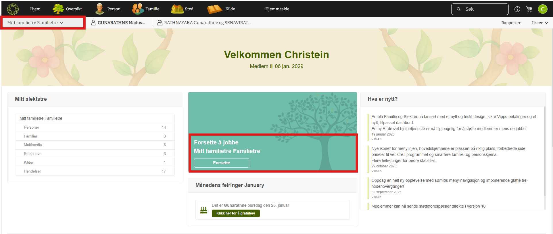 3. Klikk på undermenyen for å administrere familietrær