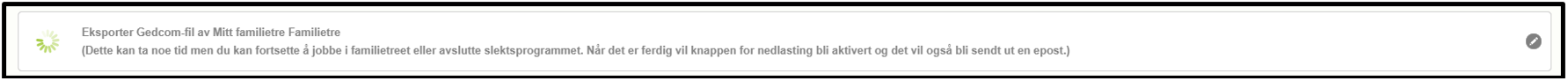 9. Klikk deretter på Eksporter fil-knappen som starter en bakgrunnsjobb for å opprette en Gedcom-fil som også benyttes som en sikkerhetskopi av familietreet.