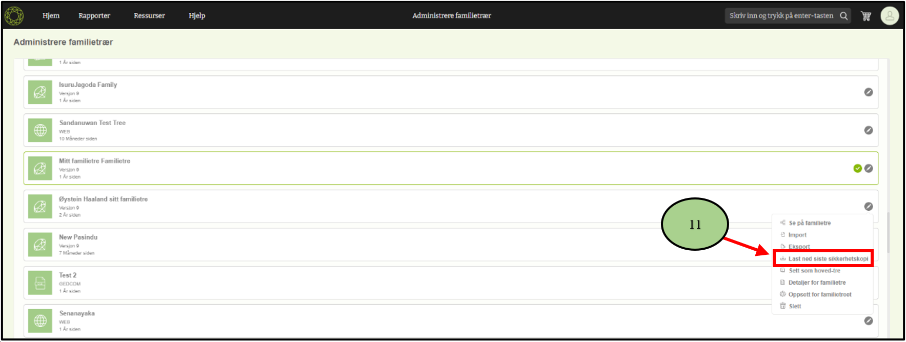 2. Velg nedtreksikonet til høyre for navnet til familietreet.