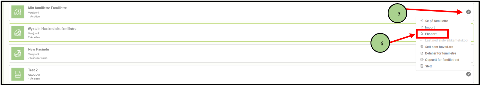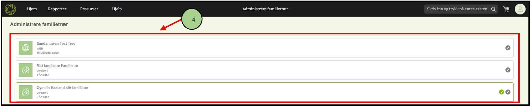 5. Klikk på redigeringsikonet helt til høre for familietreet. En undermeny vises.