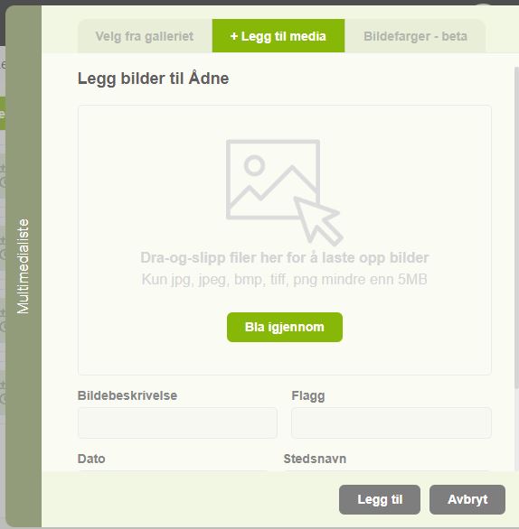 2. Aller først må det enten lastes opp ett nytt familiebilde eller koble opp et bilde som allerede er registert i galleriet.