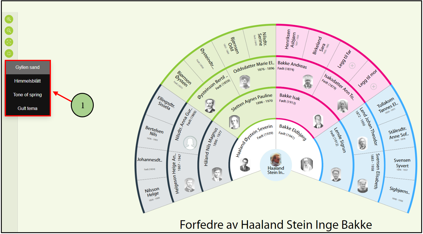 1. Velg ikonet med bildet av ett spann. En undermeny med forskjellige tema vises. Velg ett tema.