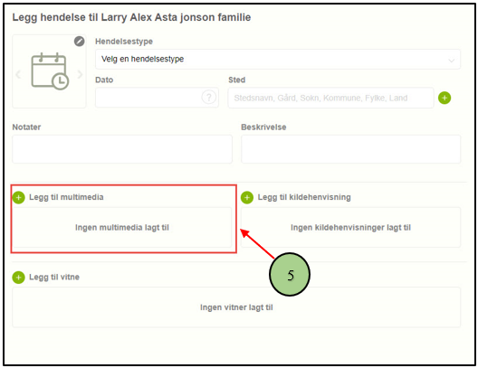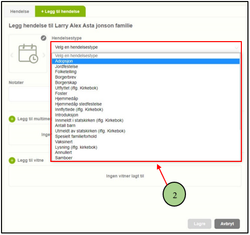 1. Det er mulig å legge til en ny personhendelse ved å klikke på knappen for +Legg til hendelse.