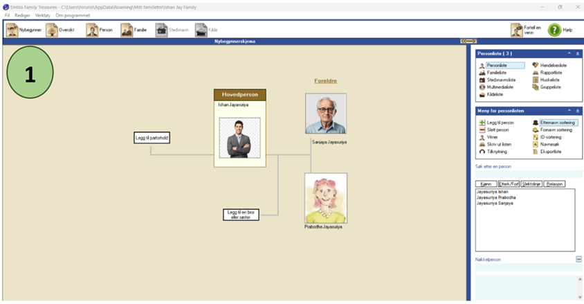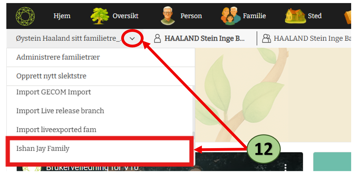 14. Du kan nå fortsette å arbeide med familietreet som du sikkerhetskopierte fra V9 til V10.