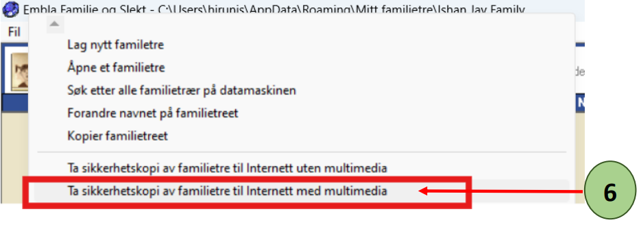 - Klikk på “Ta Sikkerhetskopi av Familietre til Internett med multimedia” i boksen.