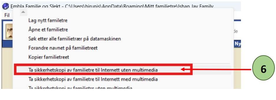 - Klikk på “Ta Sikkerhetskopi av Familietre til Internett uten Multimedia” i boksen.