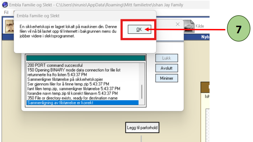 Etter å ha klikket på dette, vil det lagre både slektstreet ditt og alle tilhørende multimediafiler til V10.