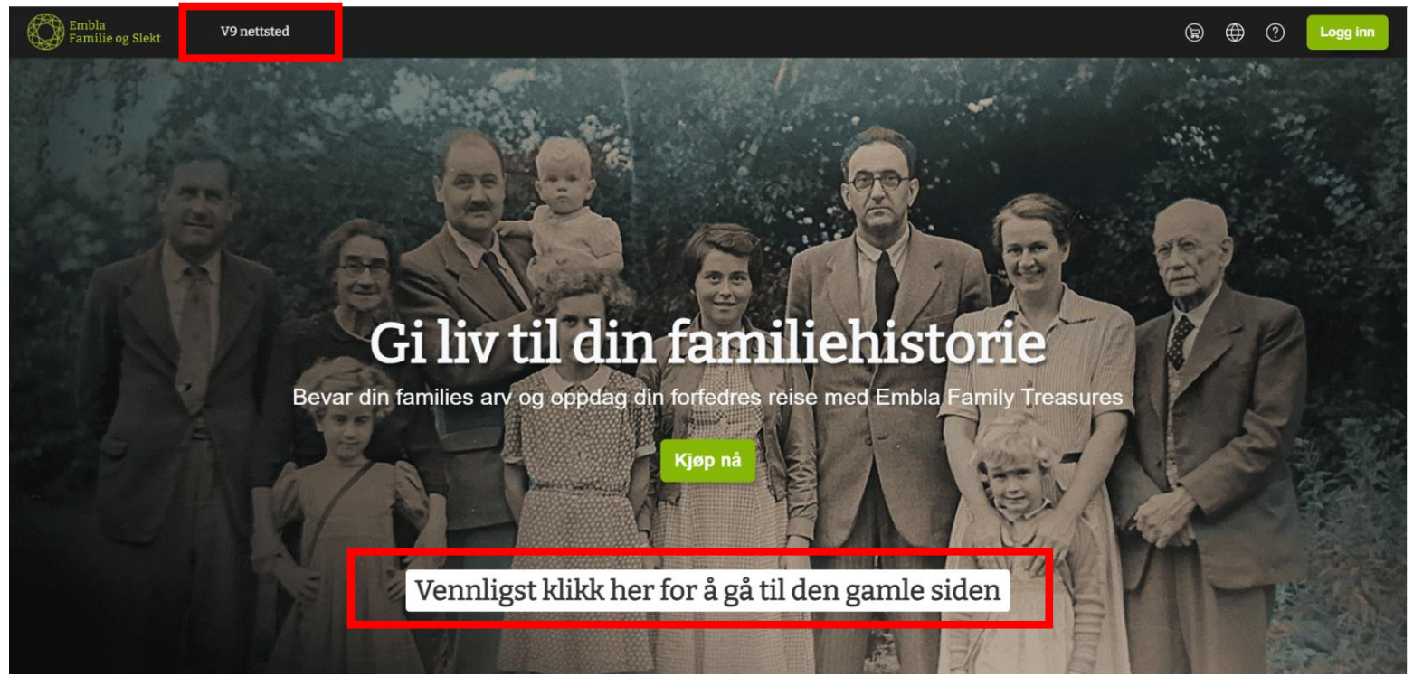 2. Klikk på lenken «v9 nettsted» for å få tilgang til versjon 9-siden.