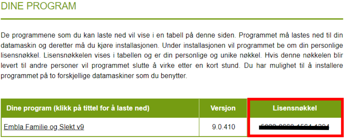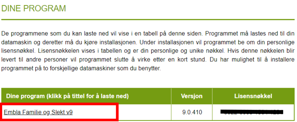 5. Klikk på ‘Embla Familie og Slekt v9’.
