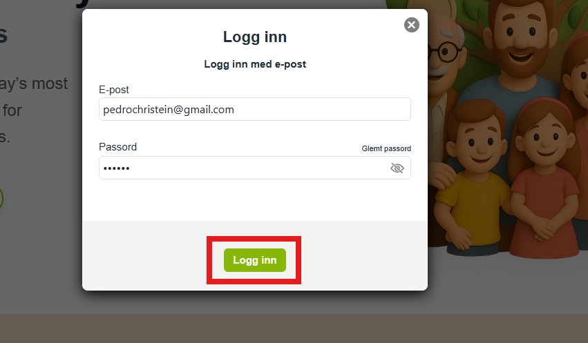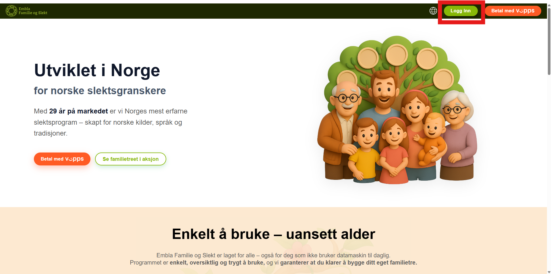 Logg inn med registrert e-postadresse og passord tilknyttet din Embla familiehistorie-konto