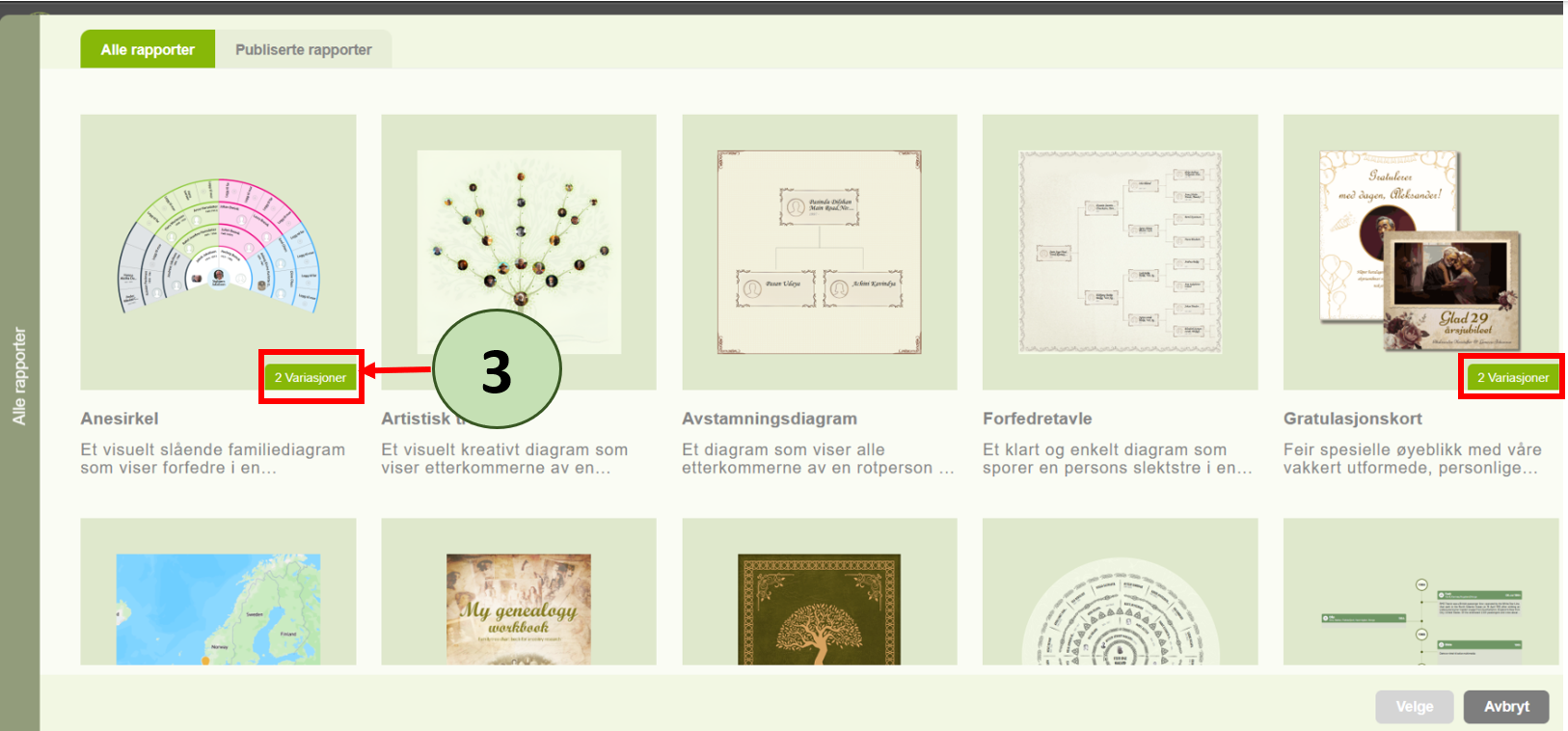 Her vil du se den nylig designede rapportmenyen, som lar deg enkelt velge rapporten du trenger. Hver rapport vises med et tydelig bilde, noe som hjelper deg å raskt identifisere og velge den rette.