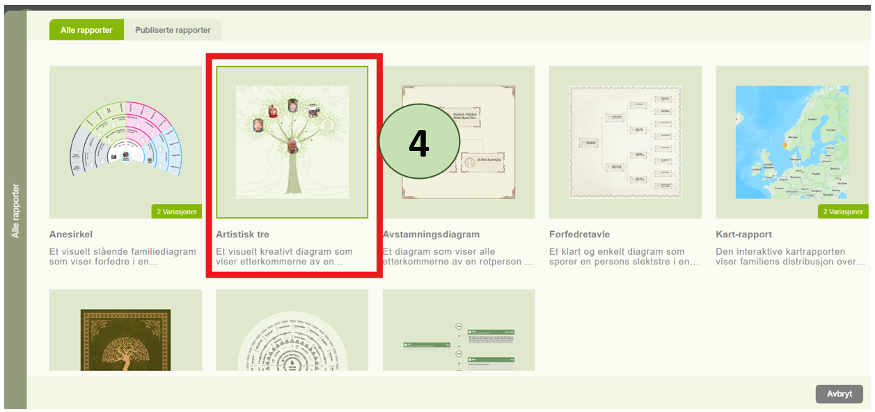 4. Klikk på rapportkategorien som passer dine behov for å velge den spesifikke rapporten fra listen.